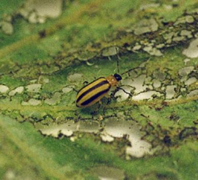 We’ve sighted striped cucumber beetles (they are yellow with black stripes) on squash plants in the heritage plots and a few in various raised beds. Here is a recipe for an organic spray you can make at home to deal with the beetles.